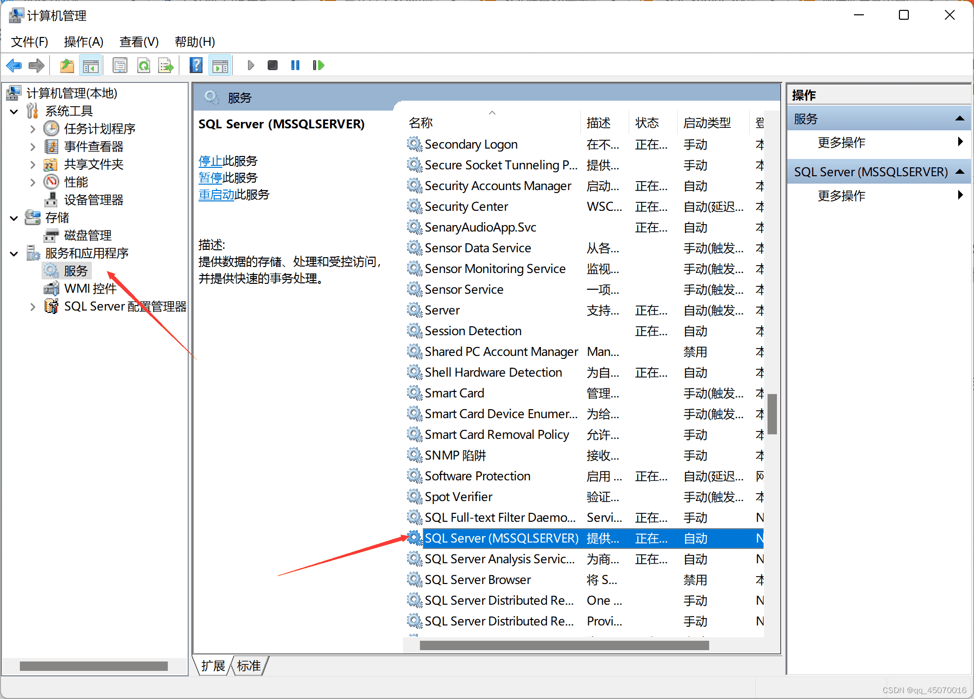两.正在弹没的“SQL Server 料理”窗心外,选择“SQL Server 供职”。