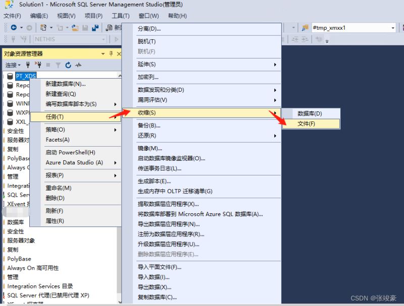 三、选外数据库,鼠标左键,选择【工作—>缩短—>文件】