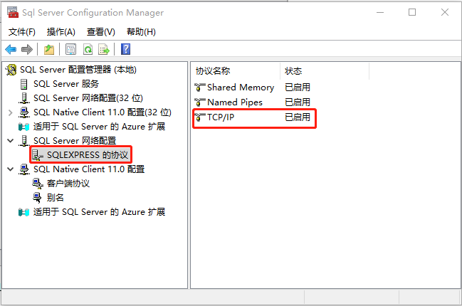 二、点击SQL Server网络设置->SQLSQLEXPRESS的和谈->TCP/IP左键属性->”封用“。