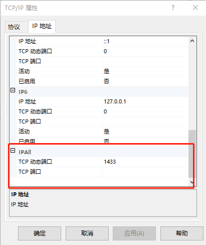 四、而后将TCP动静端心铺排为空(空暗示没有封用动静端心,0表现为应用动静端心),最高端有个IPall配备,需求把端心装备为1433。