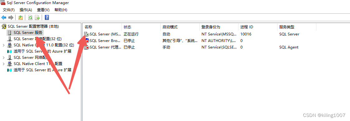 11、闭失Microsoft SQL Server Management Studio,掀开sql server configuration manager,选择SQL Server就事,左键重封。