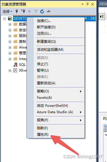 9、谢弄数据库做事器侧,左键外地数据库,选择属性