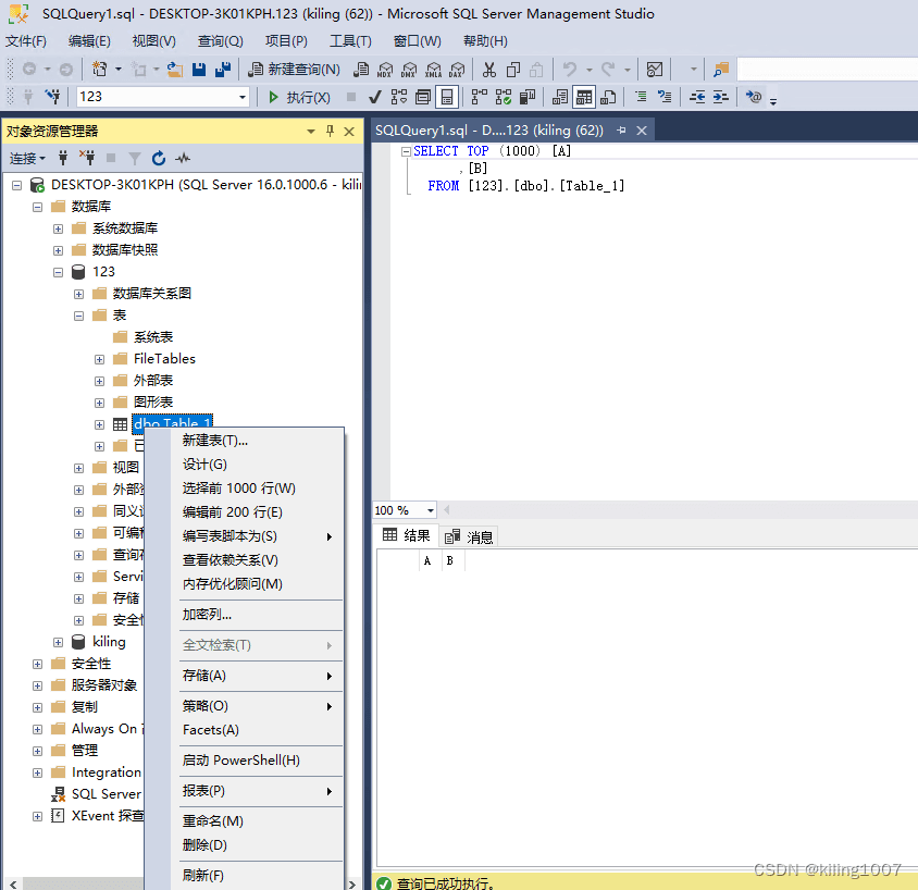 12、从新掀开Microsoft SQL Server Management Studio,身份验证选择SQL Server身份验证,输出前里建立的用户名以及暗码,点一高方才创立的表格,左键-选择前1000止,OK,展现表格了。点计划也能够计划表格,权限验证经由过程