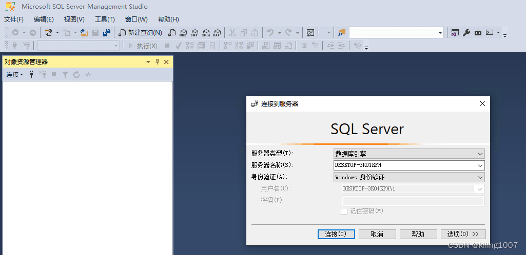 1、经由过程Microsoft SQL Server Management Studio 入进SQL Server,并经由过程默许的Windows身份验证入进数据库供职器