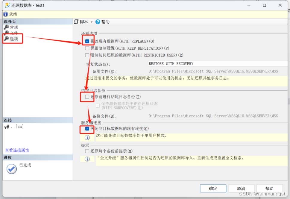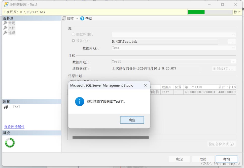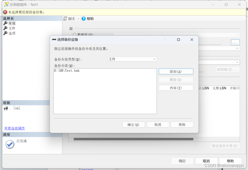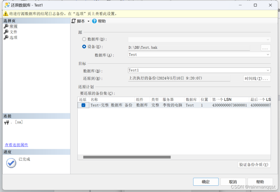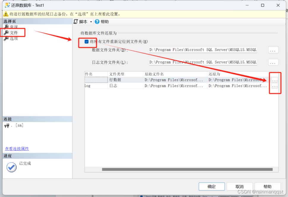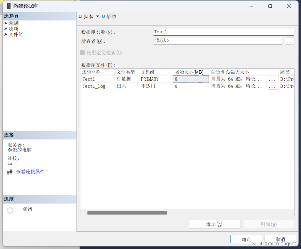 将逻辑文件Test.mdf,Test_log.ldf别离改成Test1.mdf,以及Test1_log.ldf