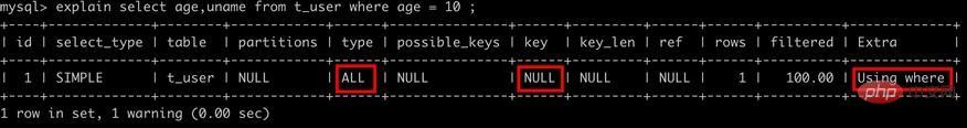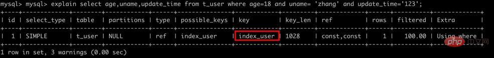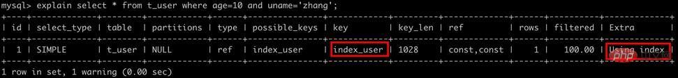 --走索引 explain select * from t_user where age=10 and uname='zhang';