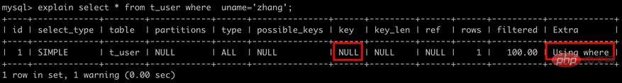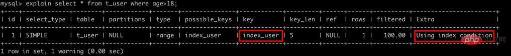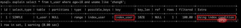 explain select * from t_user where age=18 and uname like 'zhang%';