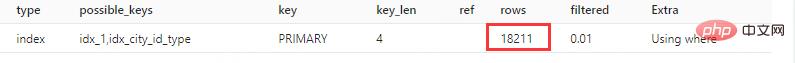KEY `idx_city_id_type` (`city_id`,`type`)复制代码请忽略idx_1和idx_city_id_type两个索引的重复,这都是历史遗留问题了。