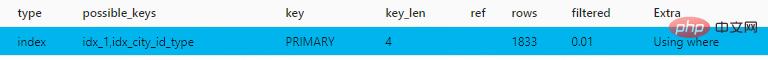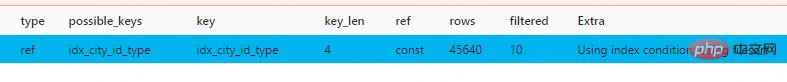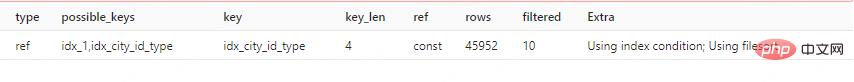 可以看到是有idx_city_id_type和idx_1索引的,我们的查询条件是city_id和type,这两个索引都是能走到的。