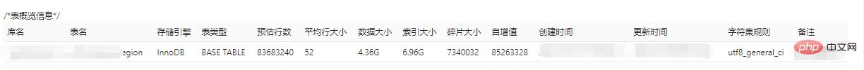 可以看到表数据量较大,预估行数在83683240,也就是8000w左右,千万数据量的表。