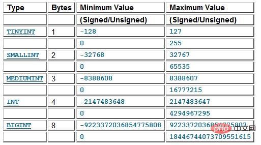 以上就是mysql数据类型有哪些的详细内容,转载自php中文网