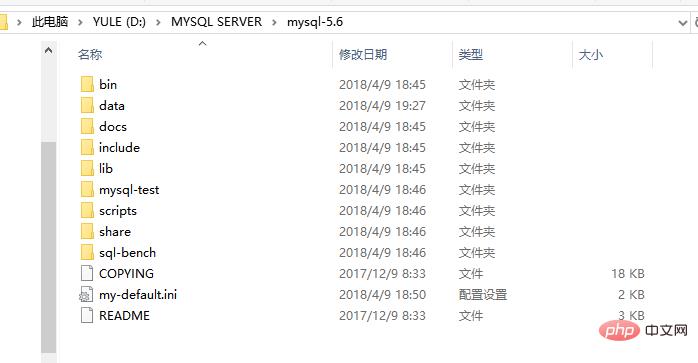 1)将mysql-5.6.39-win32.zip解压至D盘中的MYSQL SERVER,且重命名为mysql-5.6。解压修改后的结果如图1-1所示。