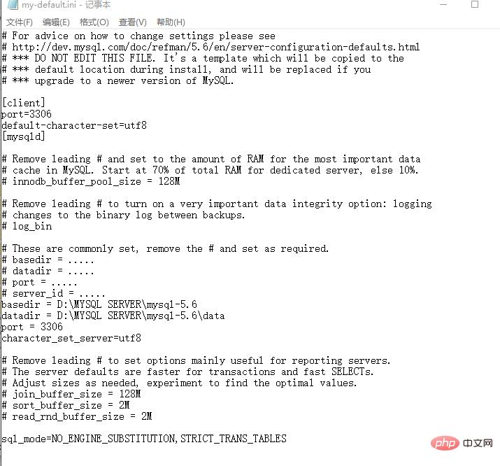2)修改my-default.ini,修改后如图1-2所示