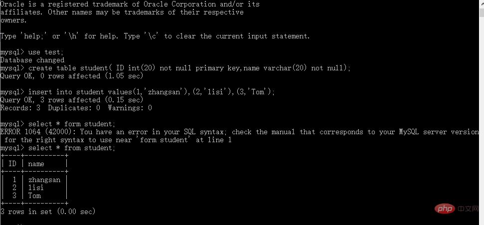 1)在cmd.exe软件中,继续输入SQL相关指令: