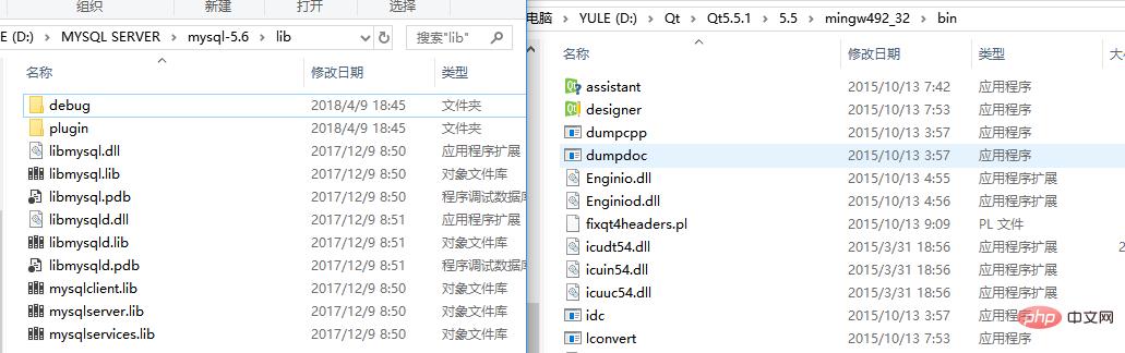 1)将mysql-5.6文件lib目录下的libmysql.dll和libmysqld.dll复制到Qt5.5中的mingw493_32的bin文件下。如图1-6所示;
