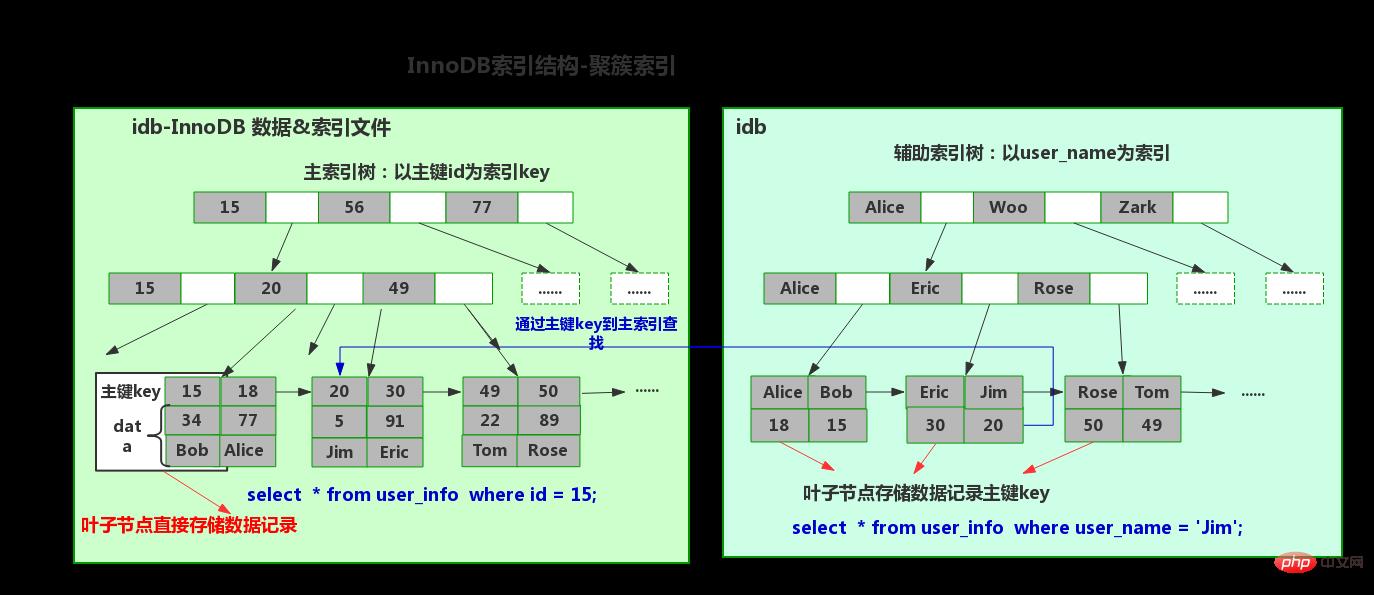 非聚集索引也是一颗B+树,只是叶子节点存的是聚集索引的主键和name 的值。