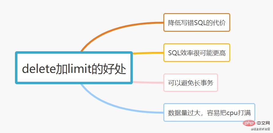 - 数据量大的话,容易把CPU打满 ,如果你删除数据量很大时,不加 limit限制一下记录数,容易把cpu打满,导致越删越慢的。