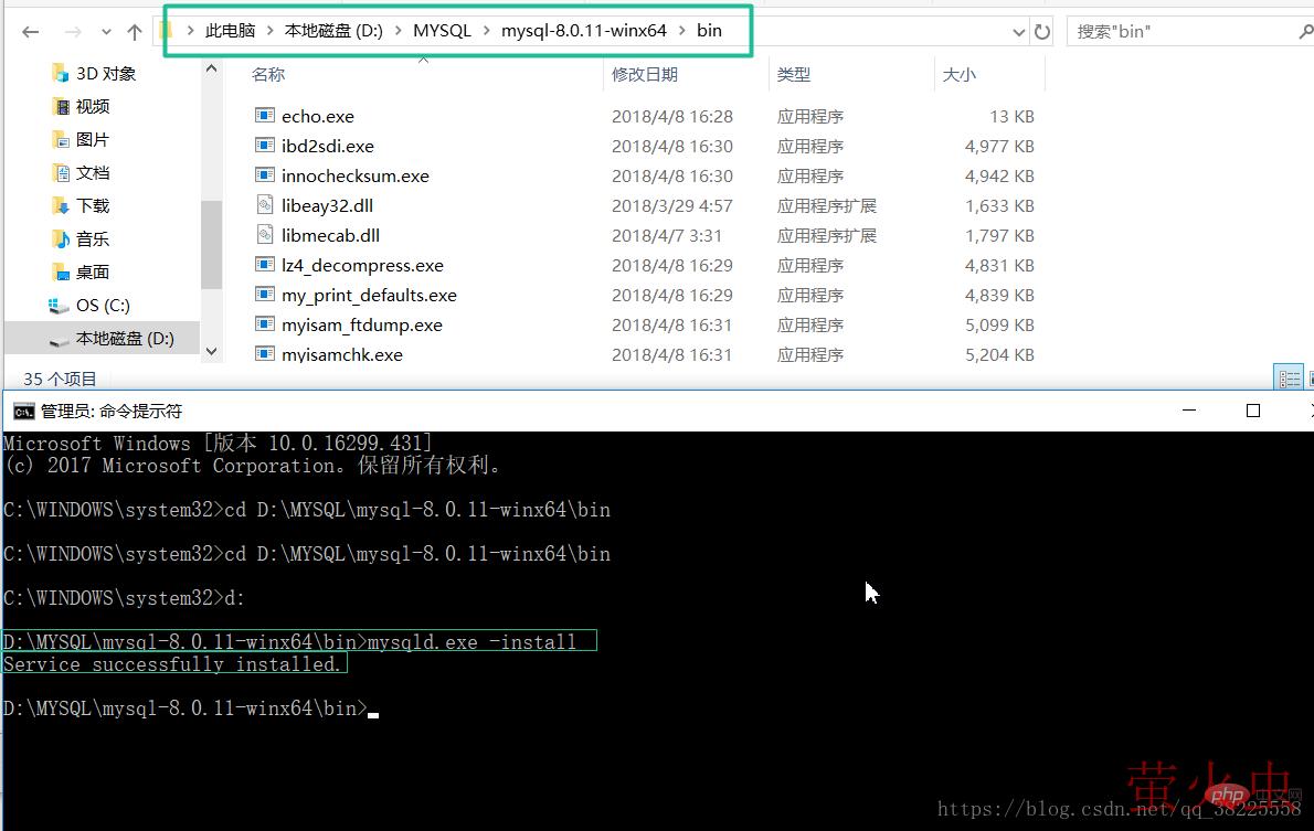 用管理员身份打开cmd,进入mysql安装的bin目录 执行mysqld.exe -install