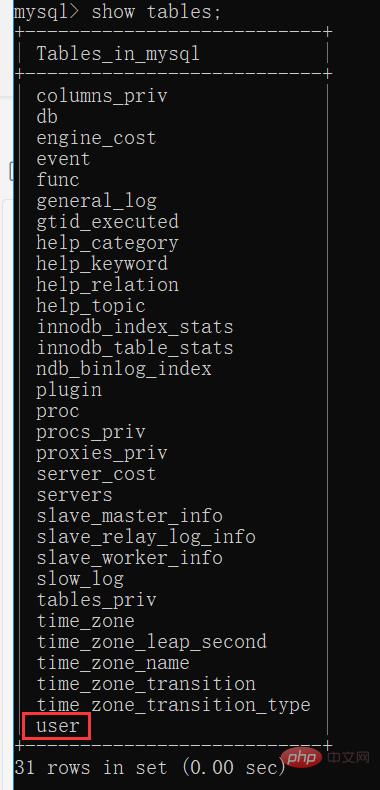 11. 输入show tables;,查看mysql数据库所有表;