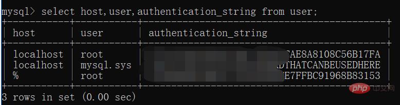 12. 输入select host,user,authentication_string from user;,mysql5.7版本数据库密码存储的字段为authentication_string;