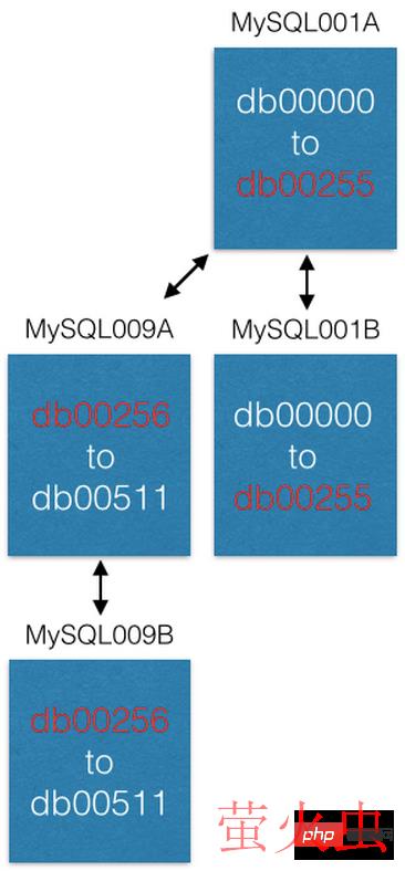{“range”: (0,511), “master”: “MySQL001A”, “slave”: “MySQL001B”},