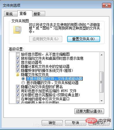 在高级设置中向下搜索,可看到显示隐藏文件夹,点击确认