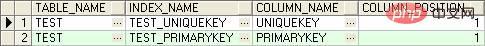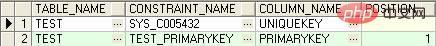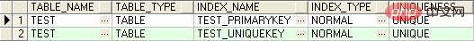 ALTER TABLE test ADD CONSTRAINT test_PrimaryKey PRIMARY KEY (PrimaryKey);CREATE UNIQUE INDEX test_UniqueKey ON test (UniqueKey);-- 在 USER_INDEXES 中可以看到两个索引名称