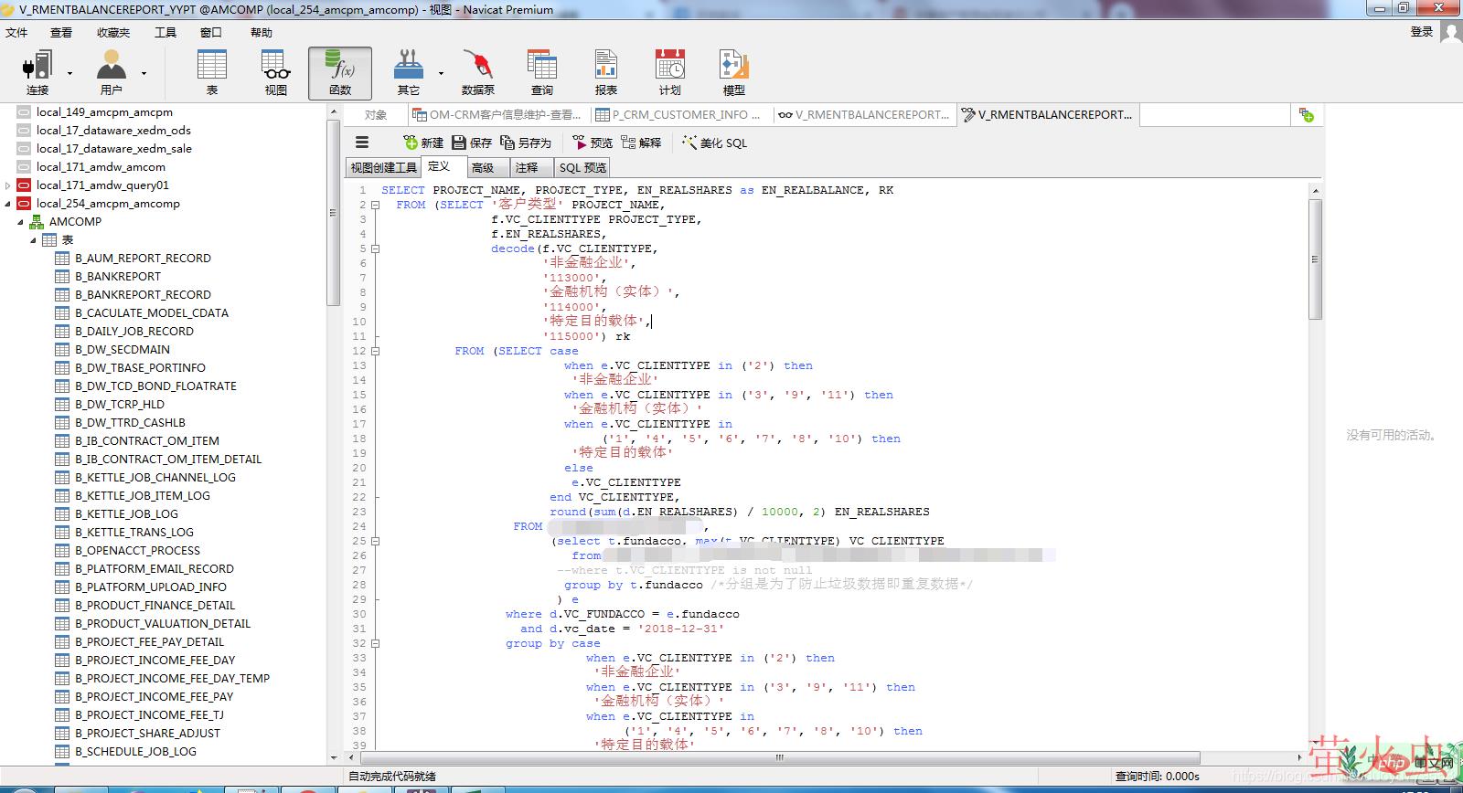 数据库是Oracle,使用的试图工具是免费版Navicat。
