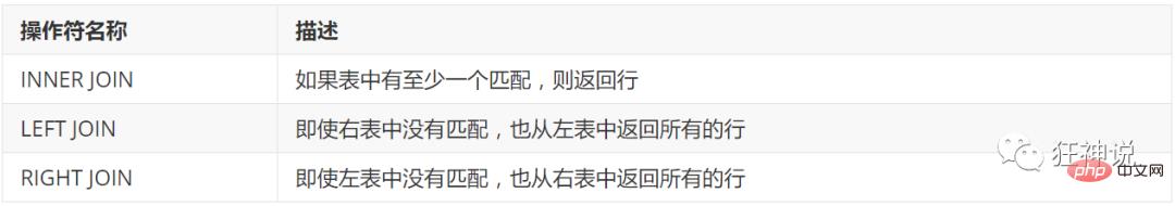 如需要多张数据表的数据进行查询,则可通过连接运算符实现多个查询