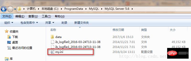 第四步我们可以看到在“C:\ProgramData\MySQL\MySQL Server 5.6”目录下面找到了my.ini文件。