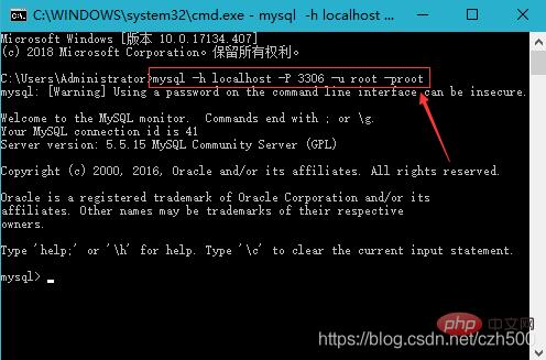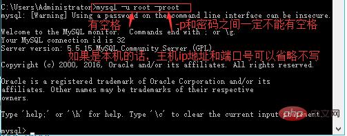 注意:如果是本机的话,主机ip和端口号可以不写(即主机ip和端口号可以省略),直接写成mysql -u root -proot