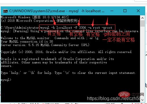 mysql -u root -proot或者mysql -uroot -proot