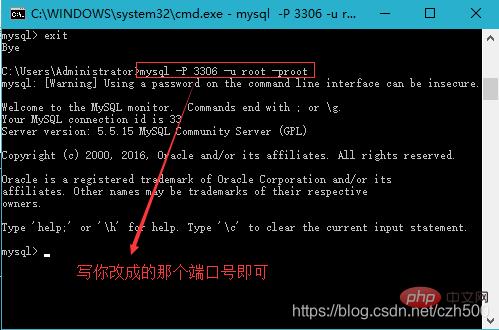 mysql -P 3306 -u root -proot