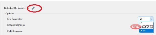 注意:点击红圈标记的按钮,弹出选项(Opinions),在行间隔处选择CR LF(windows系统”/r/n”); 编码格式utf-8; 列表部分根据需要选择对应字段;然后点击下一步,直到执行完成,即可完成数据导入;