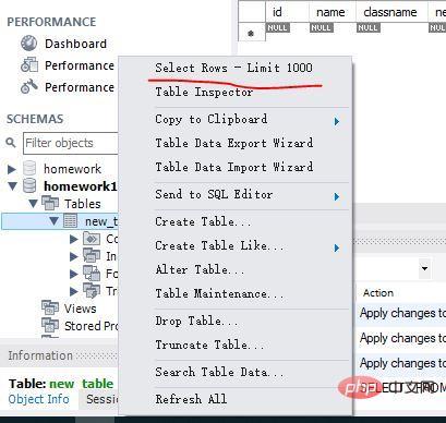 第一步:右键点击表,选择Select Rows -Limit 1000