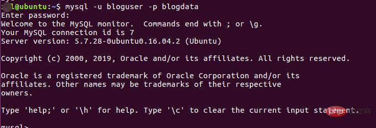 $ create database blogdata; # 创建一个名为blogdata的数据库