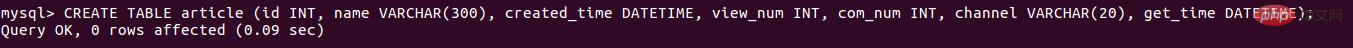 CREATE TABLE article (id INT, name VARCHAR(300), created_time DATETIME, view_num INT, com_num INT, channel VARCHAR(20), get_time DATETIME);