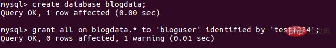 $ grant all on blogdata.* to 'bloguser' identified by 'test1234'; #创建用户bloguser