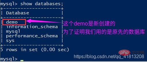 为了实验有效果我们创建一个数据库,这里干脆叫demo(如果你本身有数据库那么更好直接下面实验)