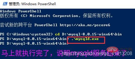 第2步、(管理员身份)cd 到mysql主目录的bin目录下