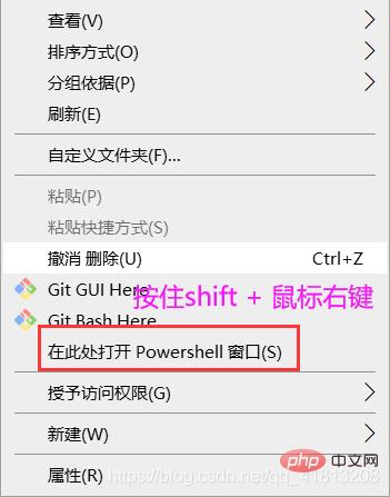当然也可以按住Shift + 鼠标右键 会有一个powershell窗口
