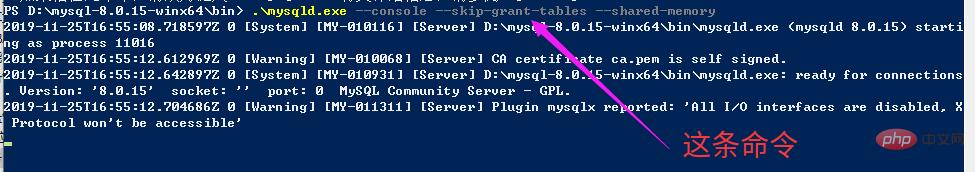 .\mysqld.exe --console --skip-grant-tables --shared-memory