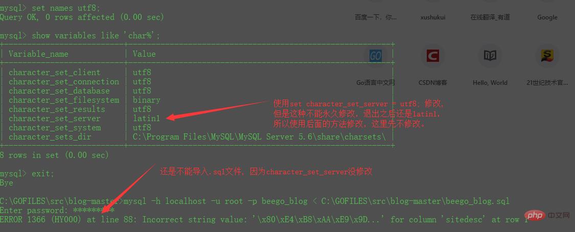 唯独character_set_server不行,退出之后再登录还是latin1,