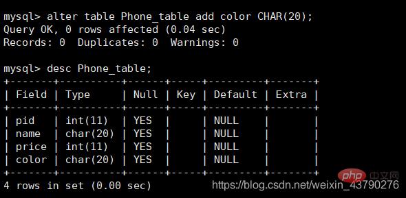 使用 alter table 表名 add 字段名 数据类型; 为已存在的表添加一个新字段。