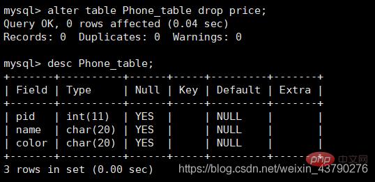 使用 alter table 表名 drop 字段名; 删除一个表中已存在的字段。