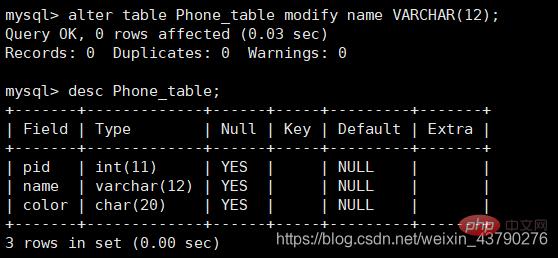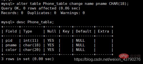 现在,将表的 name 改成了 pname ,同时修改了 pname 的数据类型。