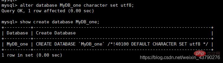如果一个数据库的编码方式不符合使用需求,可以进行修改。刚才创建的 MyDB_one 经过修改后,编码方式也变成了 utf-8 。