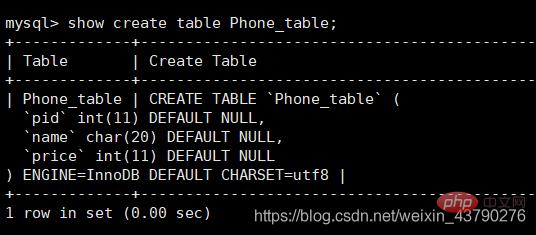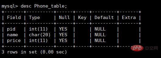 在 MyDB_one 中创建了一个叫 Phone_table 的数据表,这张表有三个字段 pid,name,price 。为了增加 SQL 的可读性,字段名我用的是小写,字段类型用大写。