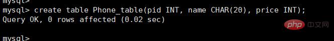 create table Phone_table(pid INT, name CHAR(20), price INT);